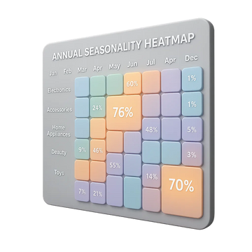 Кроме того, IceStoreLab формирует годовую тепловую карту сезонности — наглядный календарь, показывающий, когда каждая ниша входит в сезон, достигает пика и уходит в спад. Это позволяет запускать рекламу вовремя, избегать переплат и точно планировать ассортимент.
